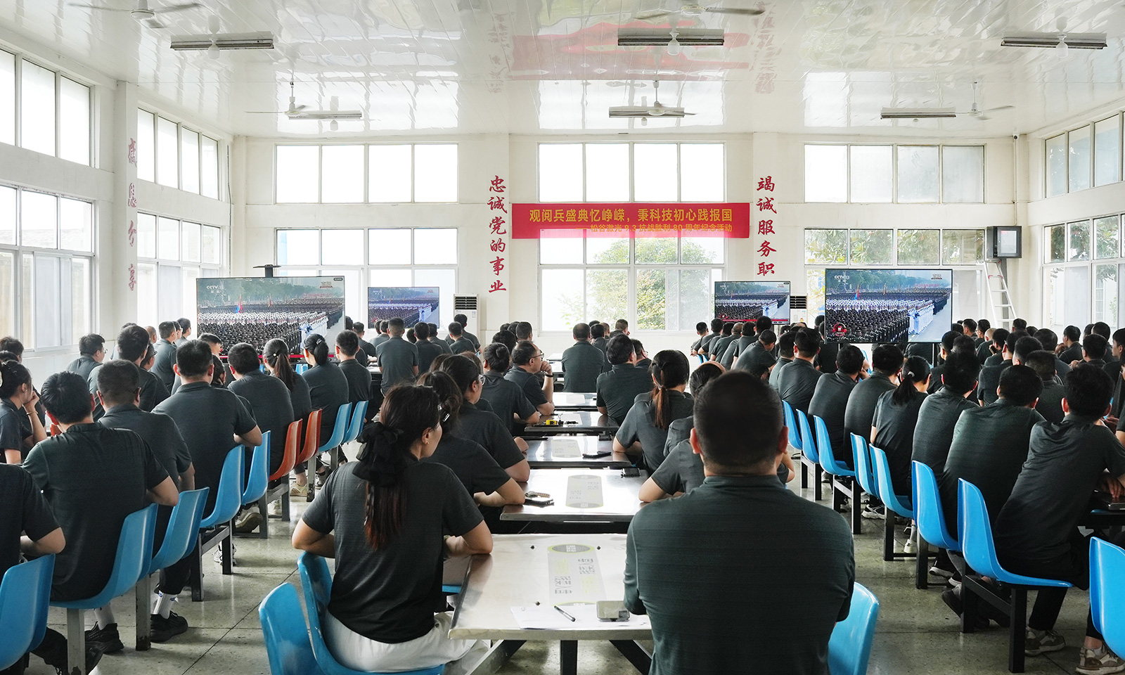 徐州松谷激光產(chǎn)業(yè)園的全體員工齊聚在會(huì)議室、生產(chǎn)車間、辦公室、餐廳等場(chǎng)地,莊重端坐,神情專注,共同觀看大會(huì)全程直播,認(rèn)真聆聽和學(xué)習(xí)大會(huì)講話精神,向偉大勝利致敬,汲取奮發(fā)前行的強(qiáng)大力量。