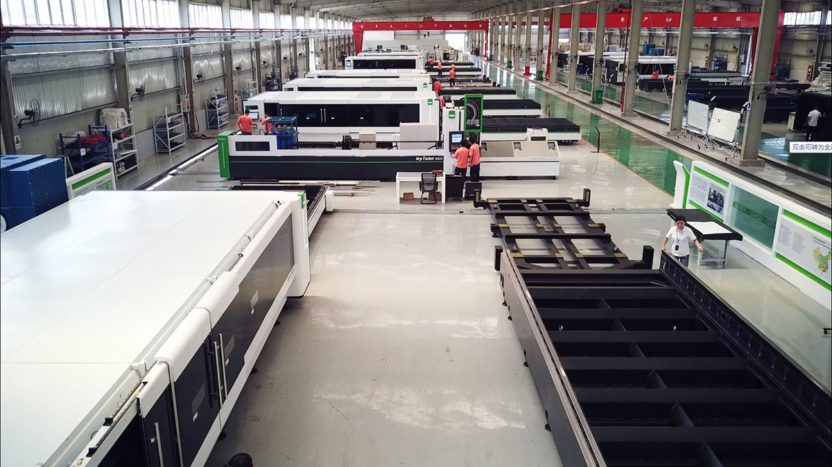在卓總的陪同下,長堀先生一行先后參觀了徐州生產(chǎn)基地的鋼材開料車間、機床焊接車間、精密機械加工車間、熱處理車間、大型機床龍門加工車間和金屬激光切割設備整機裝配調試車間等。在參觀過程中,卓總向長堀先生介紹,自2021年以來,大族粵銘激光集團一次性向徐州生產(chǎn)基地追加投資1億元人民幣,新建了現(xiàn)代化智能生產(chǎn)車間35000平米,購置了數(shù)十臺套行業(yè)內(nèi)領先的智能化龍門數(shù)控加工中心、機床噴涂生產(chǎn)線、熱處理設備和精密機械加工設備,招聘并精心培養(yǎng)了100多名熟練的高素質技術工人。從而使徐州生產(chǎn)基地具備了大型金屬激光切割裝備從開料、焊接、熱處理、機加工、表面噴涂到整機裝配與調試的全流程自有可控的大批量生產(chǎn)制造能力,建立起了全流程可掌控的產(chǎn)品質量管理體系,從根本上確保了松谷智能裝備金屬激光切割裝備的快速交付能力和過硬的產(chǎn)品品質,為徐州生產(chǎn)基地后期的高質量發(fā)展奠定了堅實的基礎。