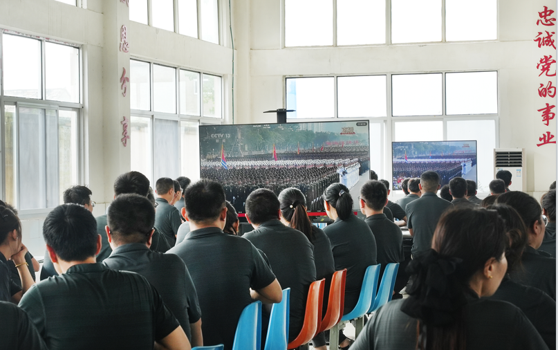 9月3日,紀(jì)念中國人民抗日戰(zhàn)爭暨世界反法西斯戰(zhàn)爭勝利80周年大會在北京天安門廣場隆重舉行。徐州松谷激光產(chǎn)業(yè)園的全體員工齊聚在會議室、生產(chǎn)車間、辦公室、餐廳等場地,莊重端坐,神情專注,共同觀看大會全程直播,認(rèn)真聆聽和學(xué)習(xí)大會講話精神,向偉大勝利致敬,汲取奮發(fā)前行的強大力量。